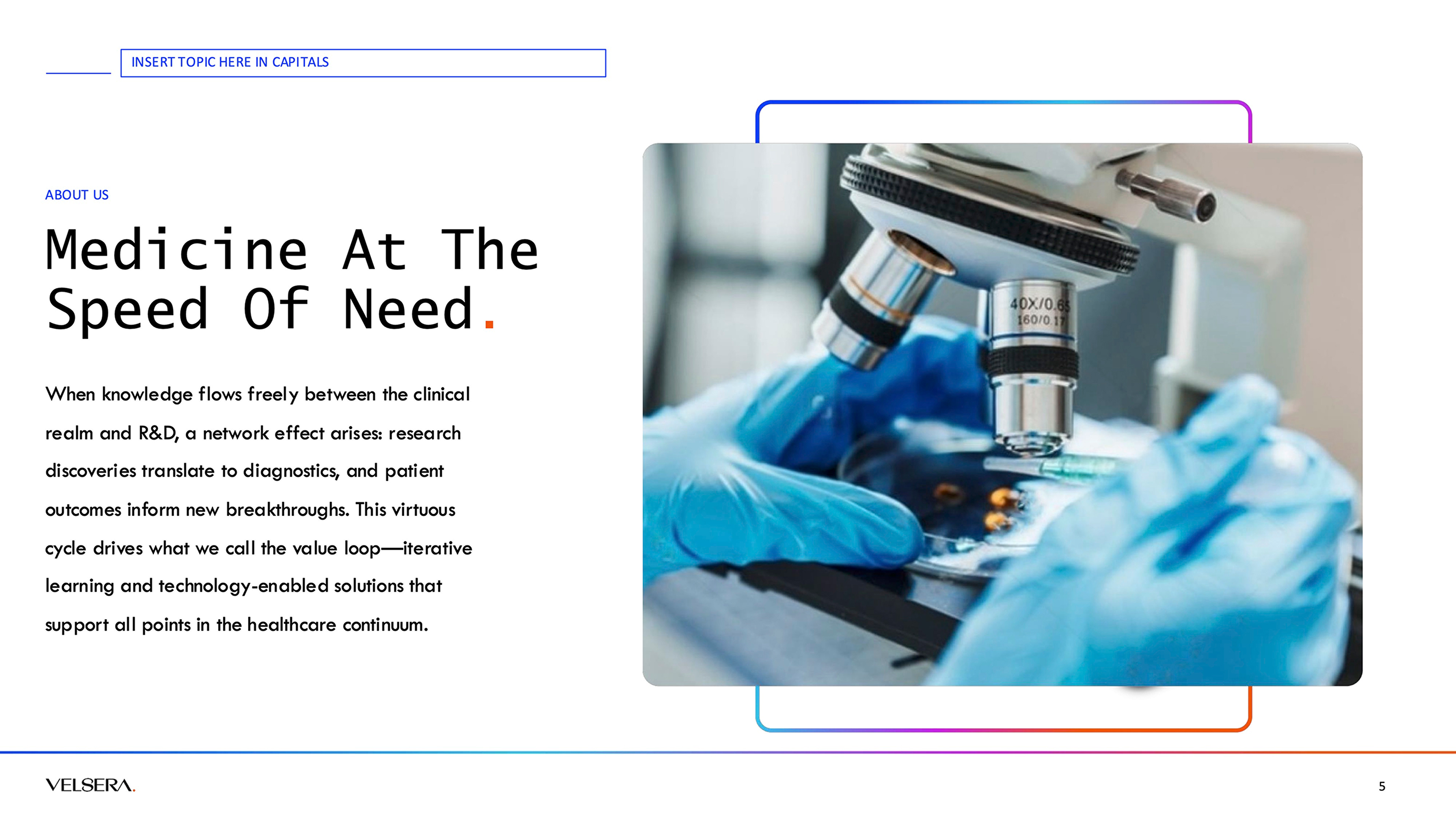At Velsera, we accelerate precision medicine by transforming clinical-genomic data into actionable insights. Our advanced software and services empower labs, biotech firms, and researchers to drive breakthroughs in genetic disease and cancer treatment—bringing innovation to patients faster.